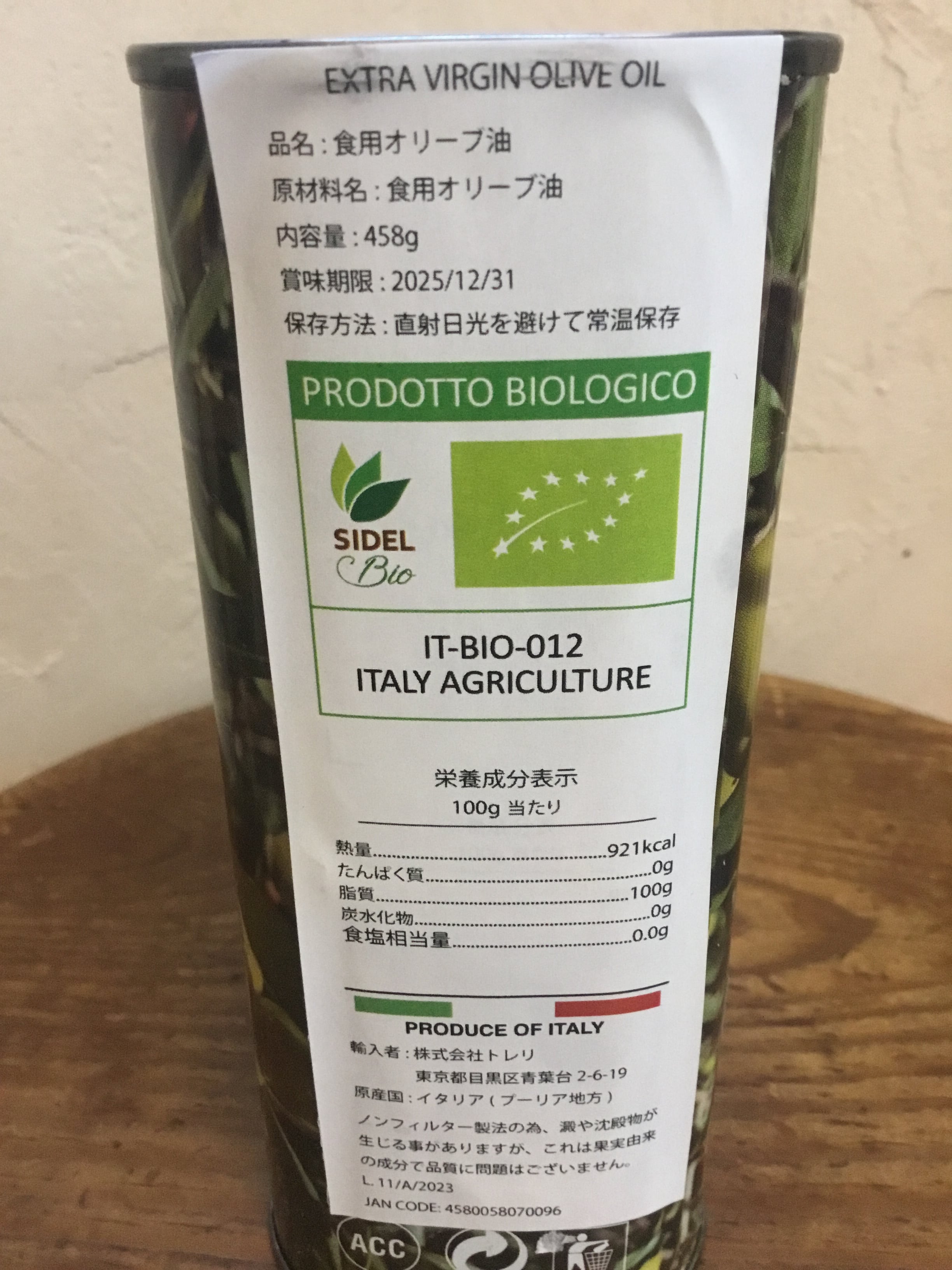 酸度0.8%以上のオイルはエクストラヴァージンとして販売できません。